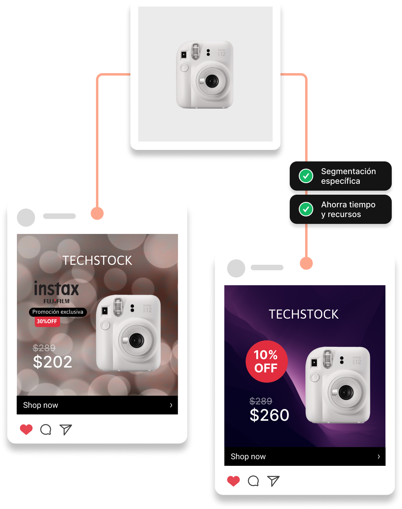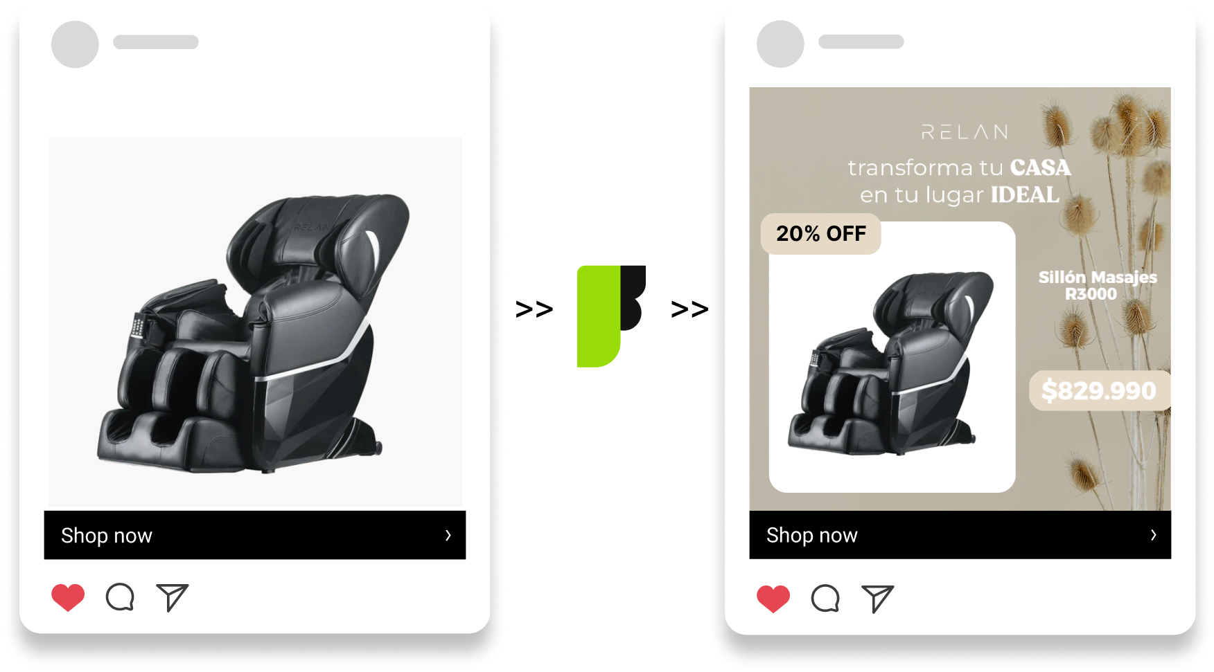 Feedom te permite aplicar diseños dinámicos sobre anuncios de catálogo como parte de una estrategia de marketing basada en experimentación y mejora continua.